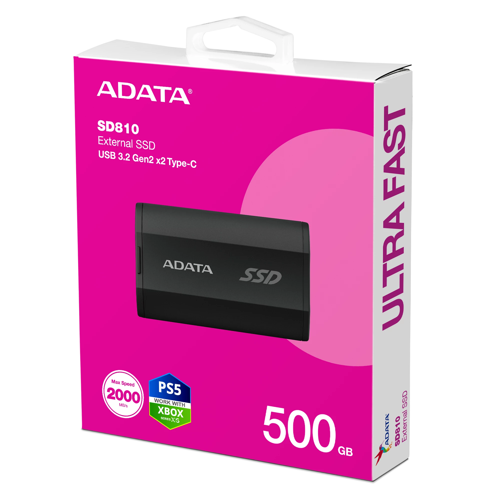 Az ADATA SD810 külső SSD egy rendkívül gyors és kompakt tárolóeszköz, amely 500 GB kapacitással és kiemelkedő 2000 MB/s olvasási és írási sebességgel rendelkezik. A flash memória alapú technológiának köszönhetően sokkal gyorsabb és tartósabb, mint a hagyományos külső merevlemezek.