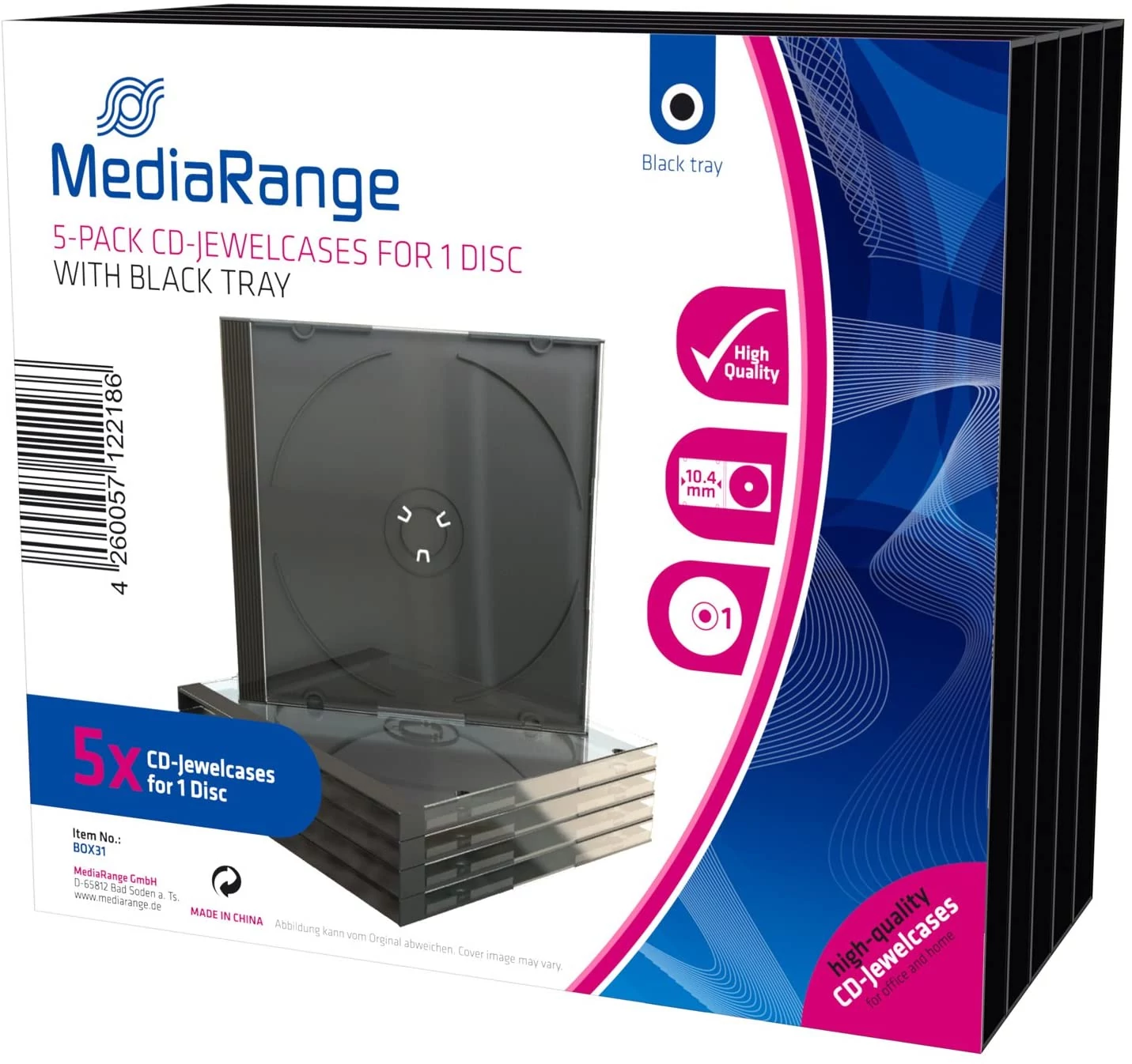 A stabil rögzítőelemnek köszönhetően a média mindig védve van a karcolásoktól, és bármikor könnyen kivehető. A 10,4 mm vastagságú tokok elegendő helyet biztosítanak a lemezek mellett a borítók tárolására is.