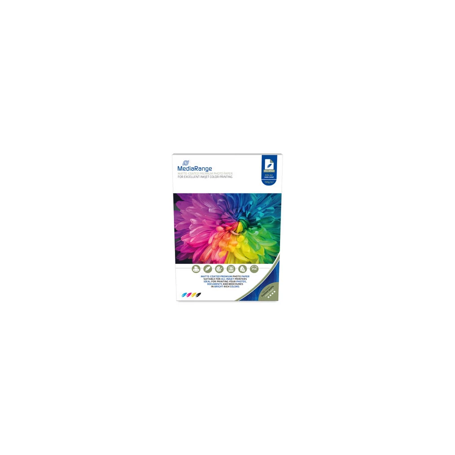 A MediaRange Matt Fotópapír kiváló választás mindazoknak, akik professzionális minőségű nyomtatást szeretnének elérni tükröződésmentes felülettel. Ez az A4-es méretű, 130 g/m² súlyú papír ideális megoldást kínál dokumentumok, prezentációk és fotók nyomtatására.