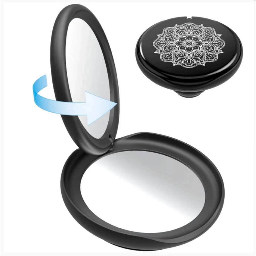 A PopSockets PopTop Gen.2 Mystic Mandala nem csupán egy egyszerű telefontartó, hanem egy praktikus kiegészítő, amely beépített tükörrel rendelkezik. A fekete alapon fehér mandala minta elegáns megjelenést kölcsönöz a készüléknek, miközben funkcionális előnyöket is nyújt.